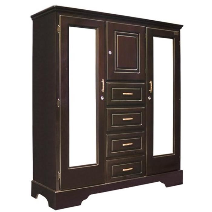 Ropero Shely 3 Cuerpos Tradicional 4 Gavetas 3 Espejos Cherry